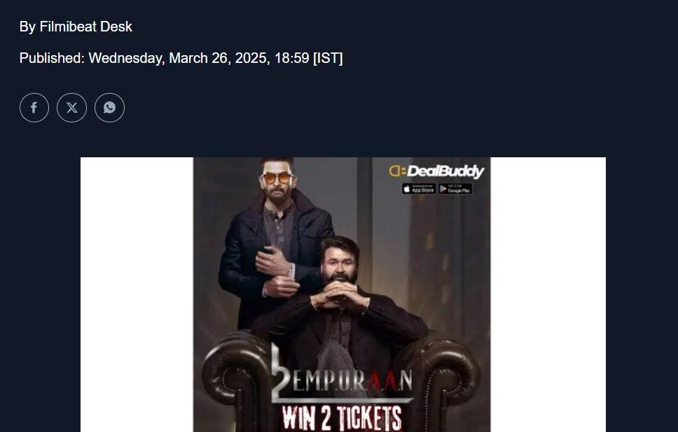 DealBuddy Featured on Filmibeat for Empuraan Movie Deal Marathon